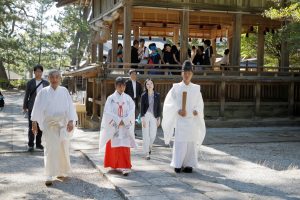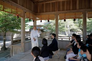 「隠岐造」と呼ばれる独特な構造の本殿は重要文化財に指定されており、その本殿を前に正式参拝を行いました。